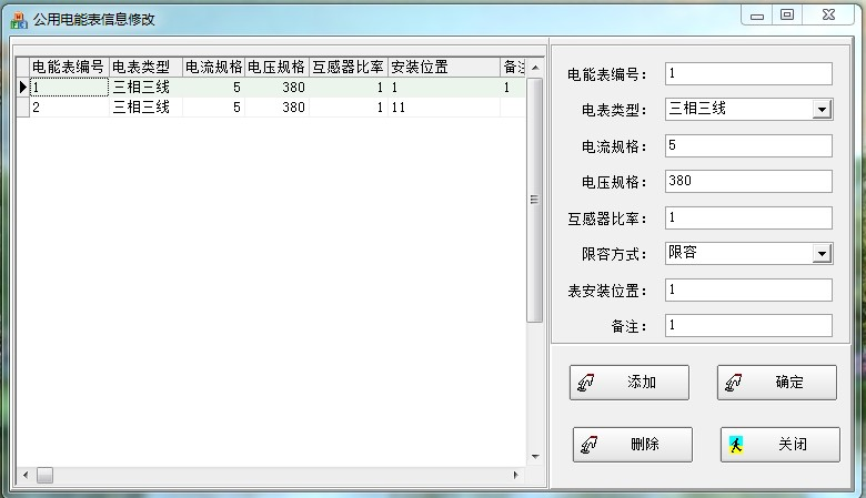 此界面中,登記此系統(tǒng)用的電表信息